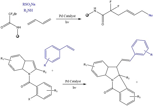 Synthesis of 1,4-difunctionalization of 1,3-dienes using Pd.